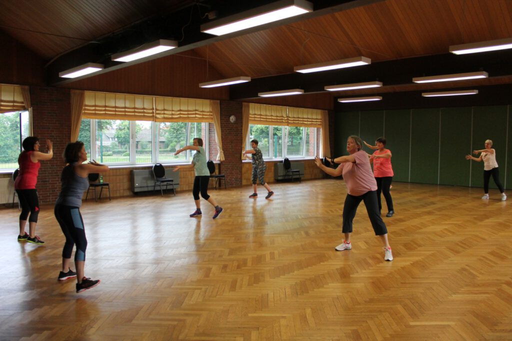 Der Kurs enthält alle Fitness- Elemente: Herz- Kreislaufübungen, Muskeltraining, Verbesserung von Flexibilität und Gleichgewicht.